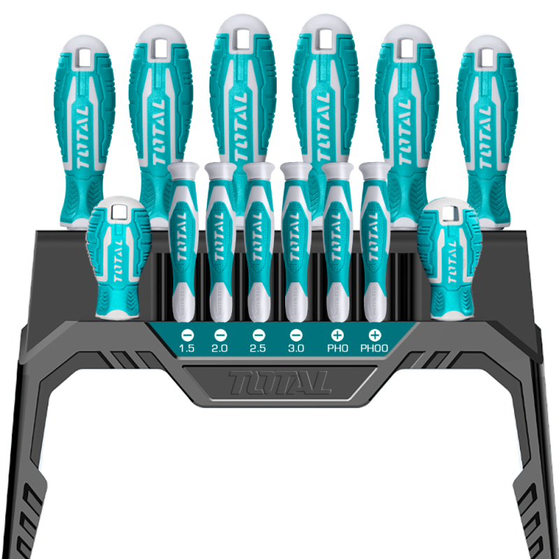 Комплект от 14 броя отвертки със стойка TOTAL, SL, PH, Tx, CrV.