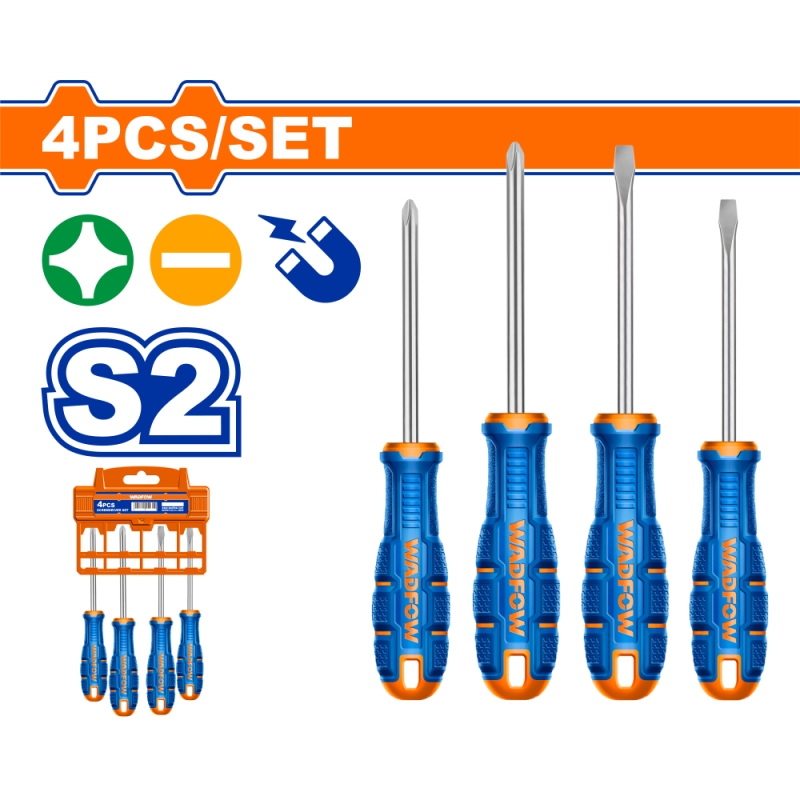 Комплект отвертки, намагнетизирани WADFOW, S2, SL, PH, 4 части
