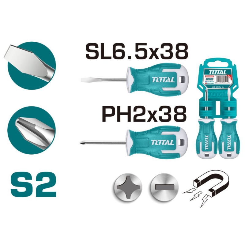 Комплект отвертки, намагнитизирани, TOTAL INDUSTRIAL, SL, PH, 2 части