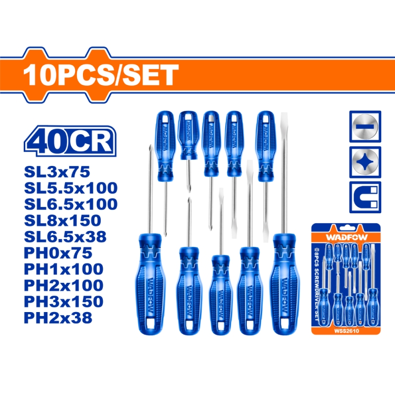 Комплект отвертки, намагнитизирани, WADFOW, SL, PH, 10 части