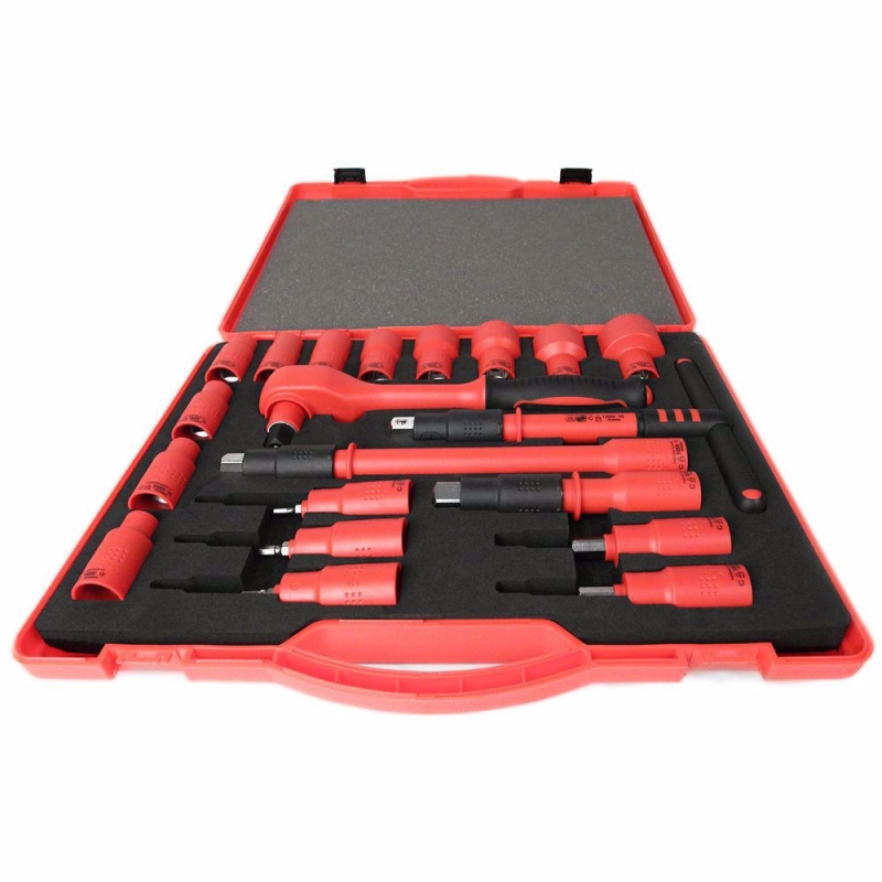Професионален комплект от 20 части. Изолирани висококачествени VDE - 1000 V тресчотки и вложки ½". Комплектът е изключително подходящ за професионални електротехници.