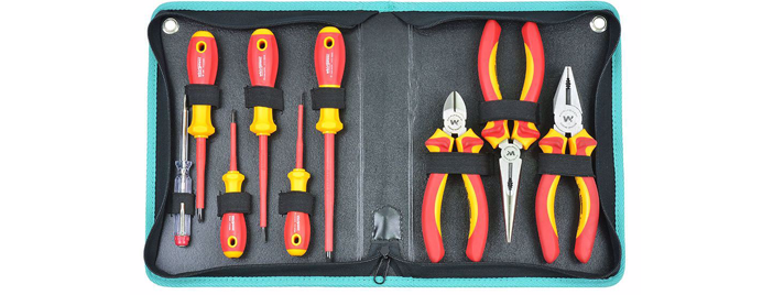 Висококачествен комплект изолирани електричарски инструменти WhirlPower. Всички те отговарят на VDE 1000 V стандарт. Изключително подходящ за професионални електротехници