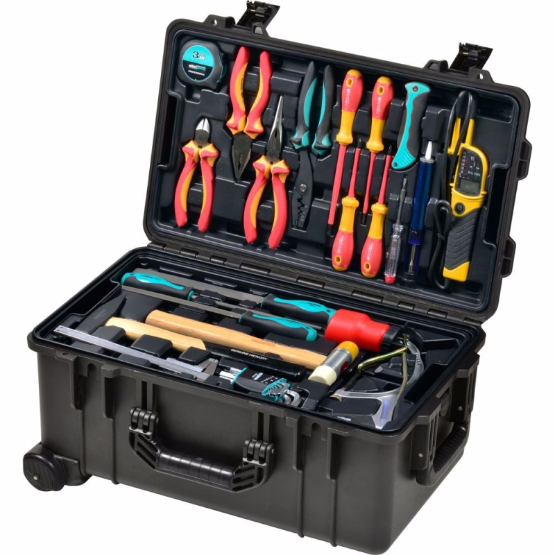 Водоустойчив куфар с професионални инструменти WhirlPower от 125 части. Здрав водоустойчив корпус с автоматичен контрол на въздуха, заключване и гумено уплътнение. Има колелца и телескопична дръжка за по-лесно транспортиране. Инструментите са сигурно предпазени от влиянието на околната среда – влага, прах и други.