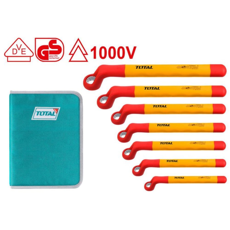 Комплект гаечни ключове лула VDE, TOTAL Industrial, SW 8 - 19 мм, 7 части