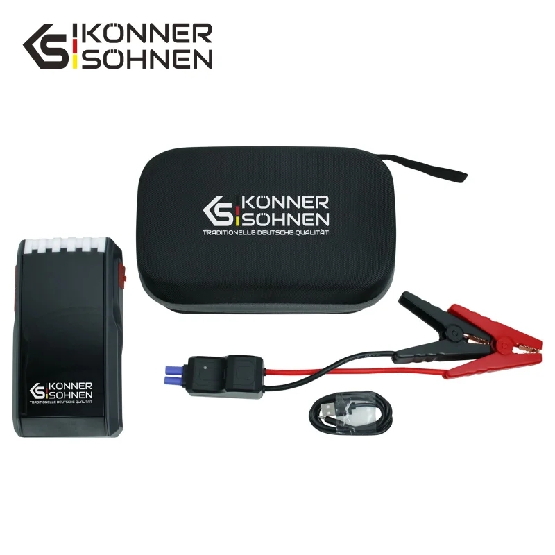 Доставя се в калъф, с кабел за зареждане и кабел с щипки за акумулатора