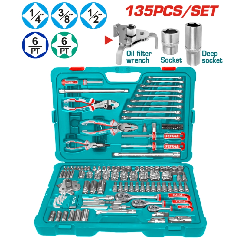 Комплект инструменти в куфар TOTAL INDUSTRIAL, 135 части